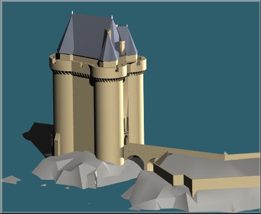 Le modèle 3D de la Tour Solidor de Saint-Servan a été réalisé en partie à partir de plans d'époque. Les formes du toit ont été reconstituées à partir de photos de l'original. Logiciels utilisés : 3D Studio Max